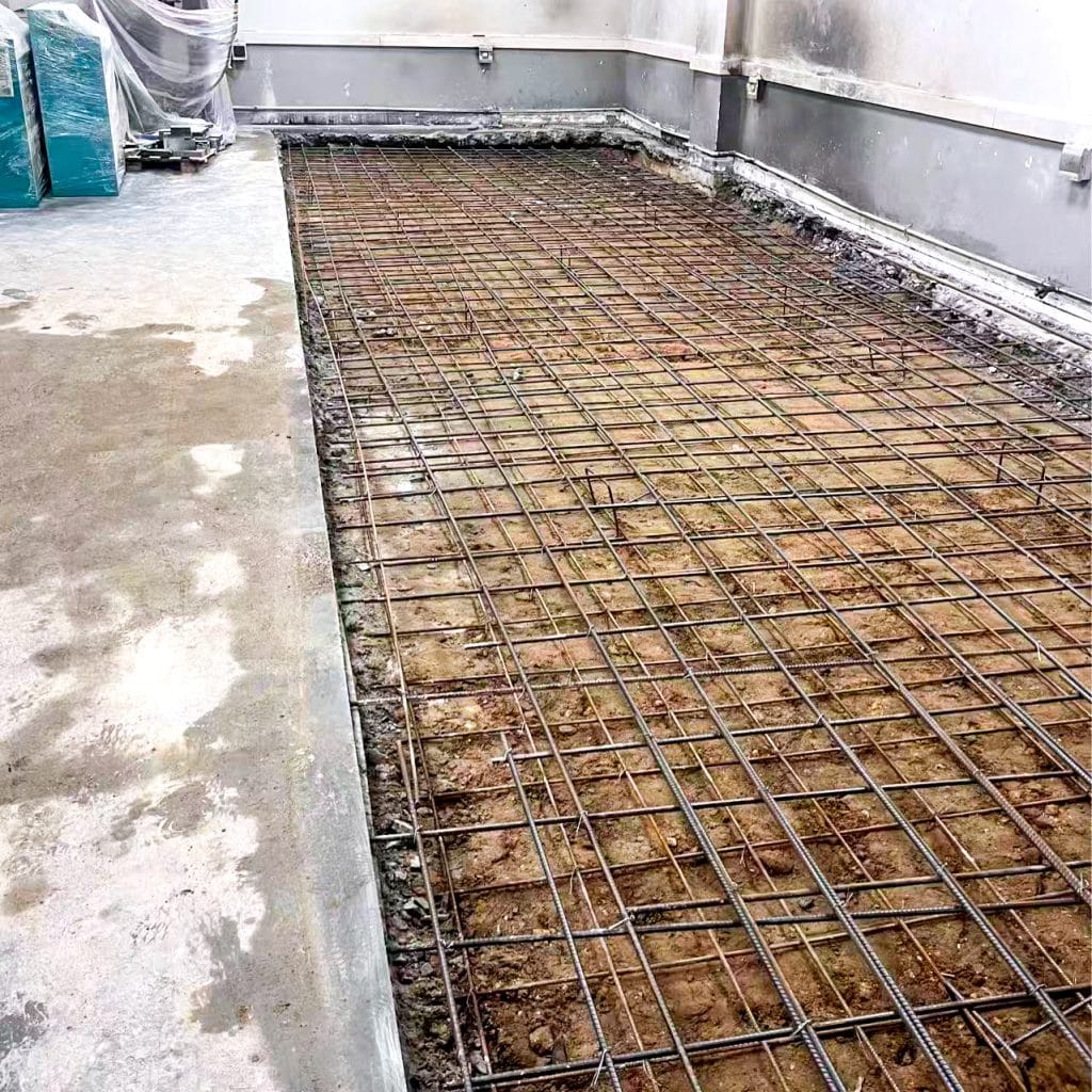 マザック工作機械が極致の精度を発揮するため、当社は基礎工程の源流から徹底した管理を実施しています。具体的には、深さ30cmの基礎を掘削し、高品質セメントによる一体打設を採用。さらに直径12mmの鉄筋を用いた網状補強により、強固な基礎を構築しています。 この独自の基礎設計は、設備が発生させる動的荷重を効果的に分散させるだけでなく、複数台の工作機械間で生じる共振干渉を大幅に抑制。これにより、マイクロメートルレベルの高精度加工を長期にわたり安定して持続させるための基盤を確立しています。 私たちは確信しています——卓越した精度は、一見目につかない細部へのこだわりによって初めて実現されるものであり、こうした基礎への徹底的な取り組みこそが、私たちの品質へのコミットメントの真の出発点であると。