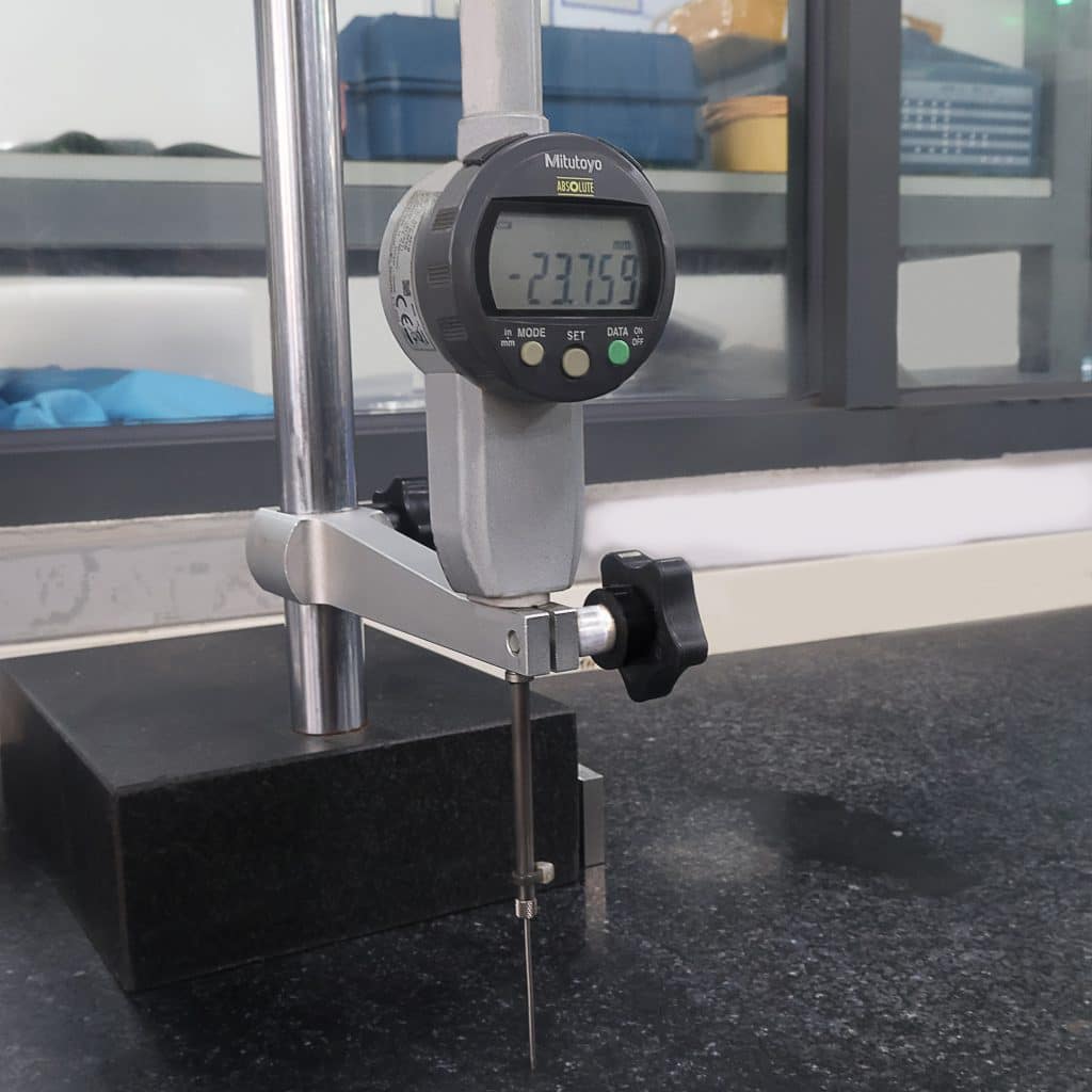 当社では、ミツトヨ製の様々な計測機器を導入し、製造工程におけるワークの精度をリアルタイムで計測します。これにより、作業効率の向上とデジタル管理を実現しました。安定した品質と信頼性の高い測定データに基づき、お客様の高基準を確実に満たす製品をお届けします。