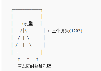 従来の二点式測定構造では、しばしば人手による中心調整が必要であり、測定誤差を引き起こしやすい。一方、三点式測定構造では、三つのプローブが120度対称に配置され、安定した三点支持を形成するため、穴の軸線を自動的に中心合わせでき、偏心による誤差を排除できます。