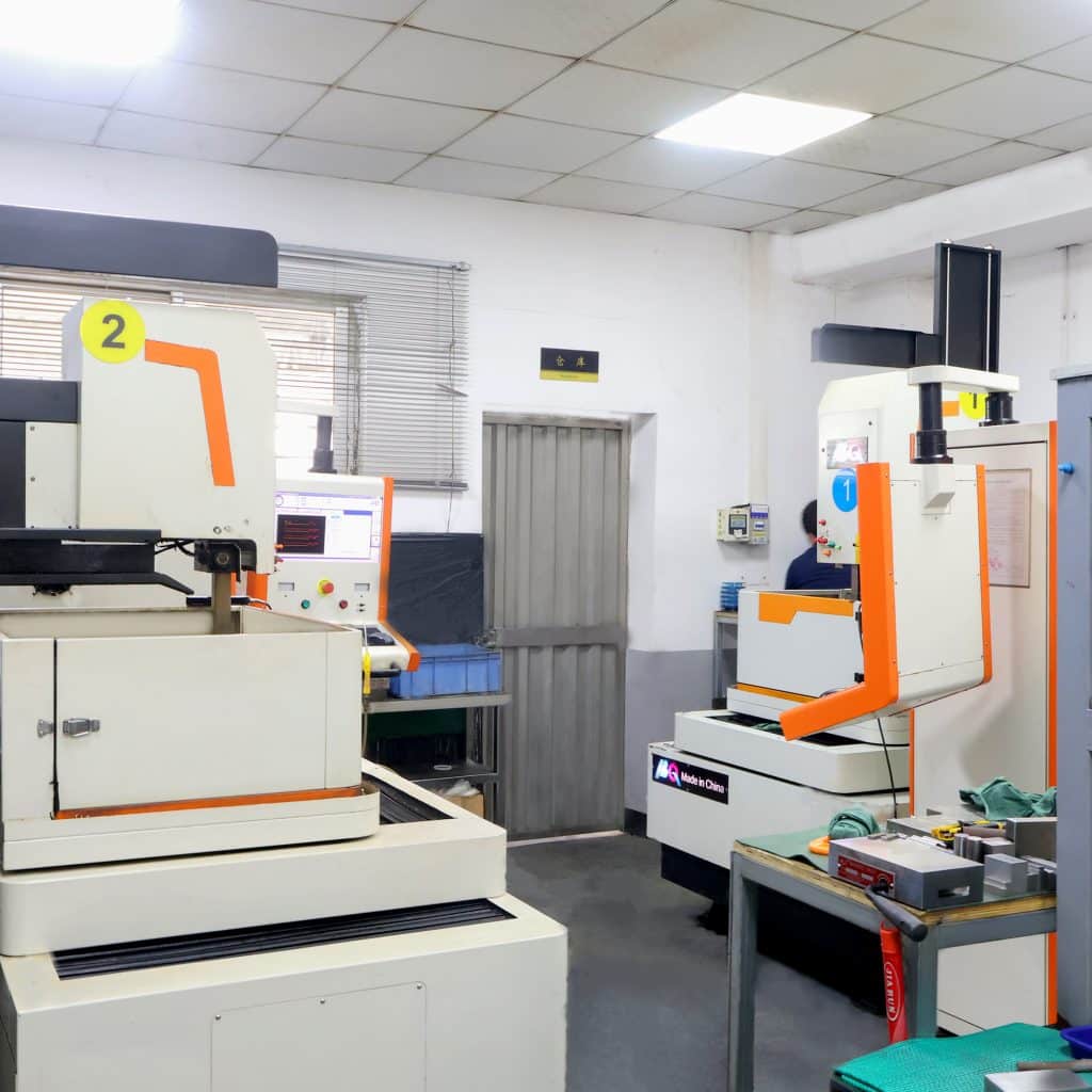 当社では、中国製の高精度な中速ワイヤ放電加工機を2台導入しております。この「中速」は、送丝速度が高速と低速の中間であることを指すのではなく、複数回の往復切割を核心技術とし、加工時の材料変形やモリブデン線の消耗を抑えつつ、精度を高める複合送丝ワイヤカット機です。送丝速度を柔軟に調整することで、ワークの品質を精密に制御することが可能です。